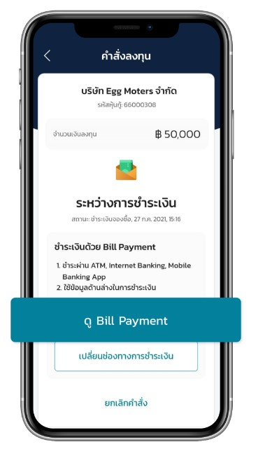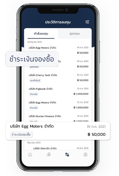 เมื่อชำระเงินสำเร็จ ระบบจะแสดงสถานะ “ชำระเงินสำเร็จ” และข้อมูลการลงทุนจะถูกอัปเดตโดยอัตโนมัติ
