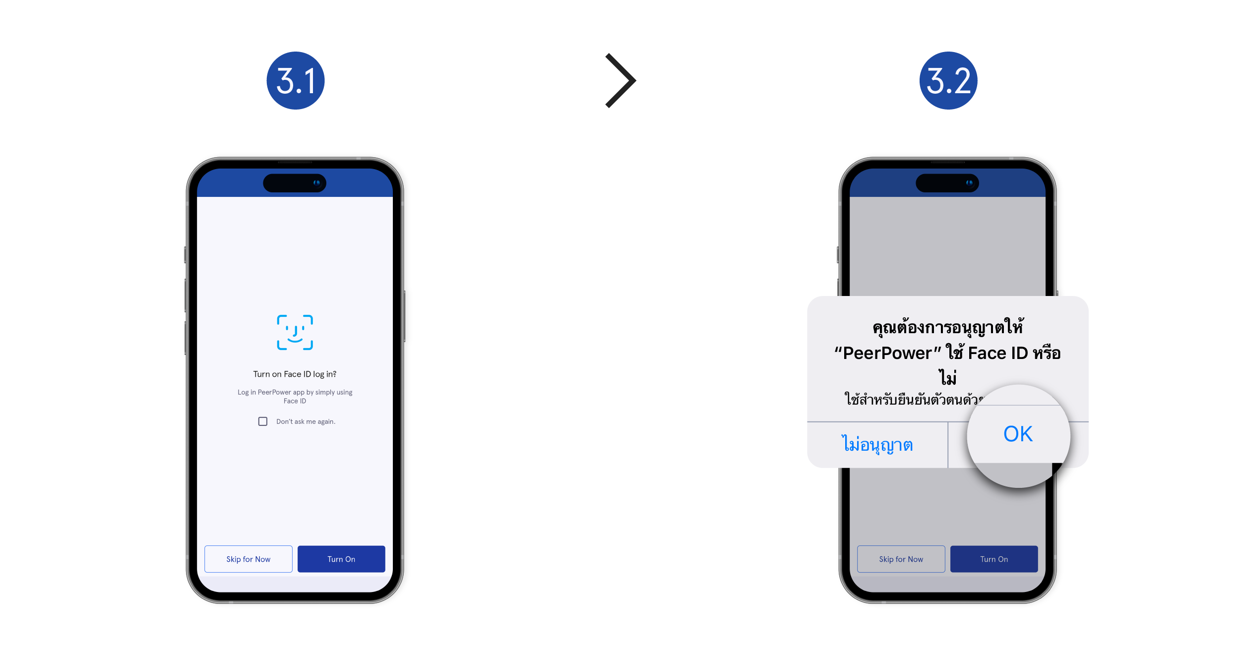 4. ตั้งค่าความปลอดภัย เปิดการใช้งานเข้าสู่ระบบ Face ID เพื่อ login กด “เปิดการใช้งาน”