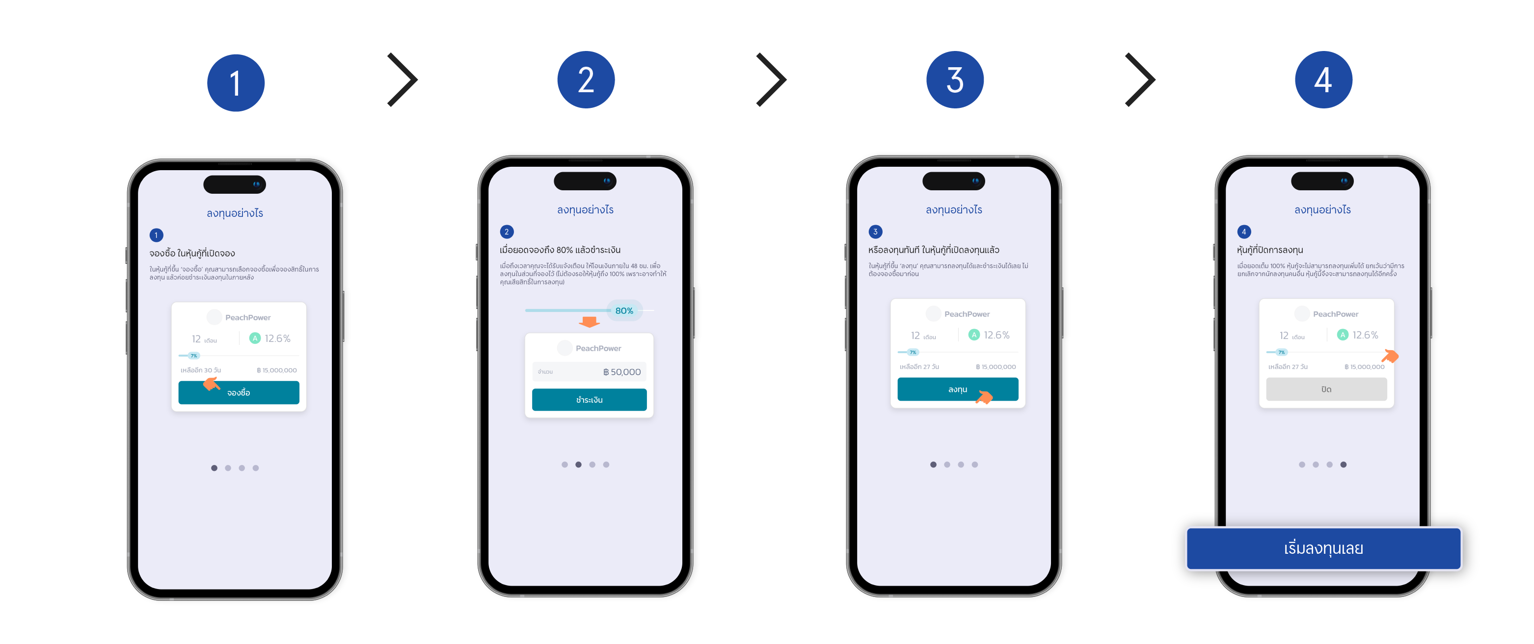 5. แถบ “ลงทุน” อ่านวิธีการลงทุน 4 ขั้นตอน เรียบร้อยแล้วกด “เริ่มลงทุนเลย”